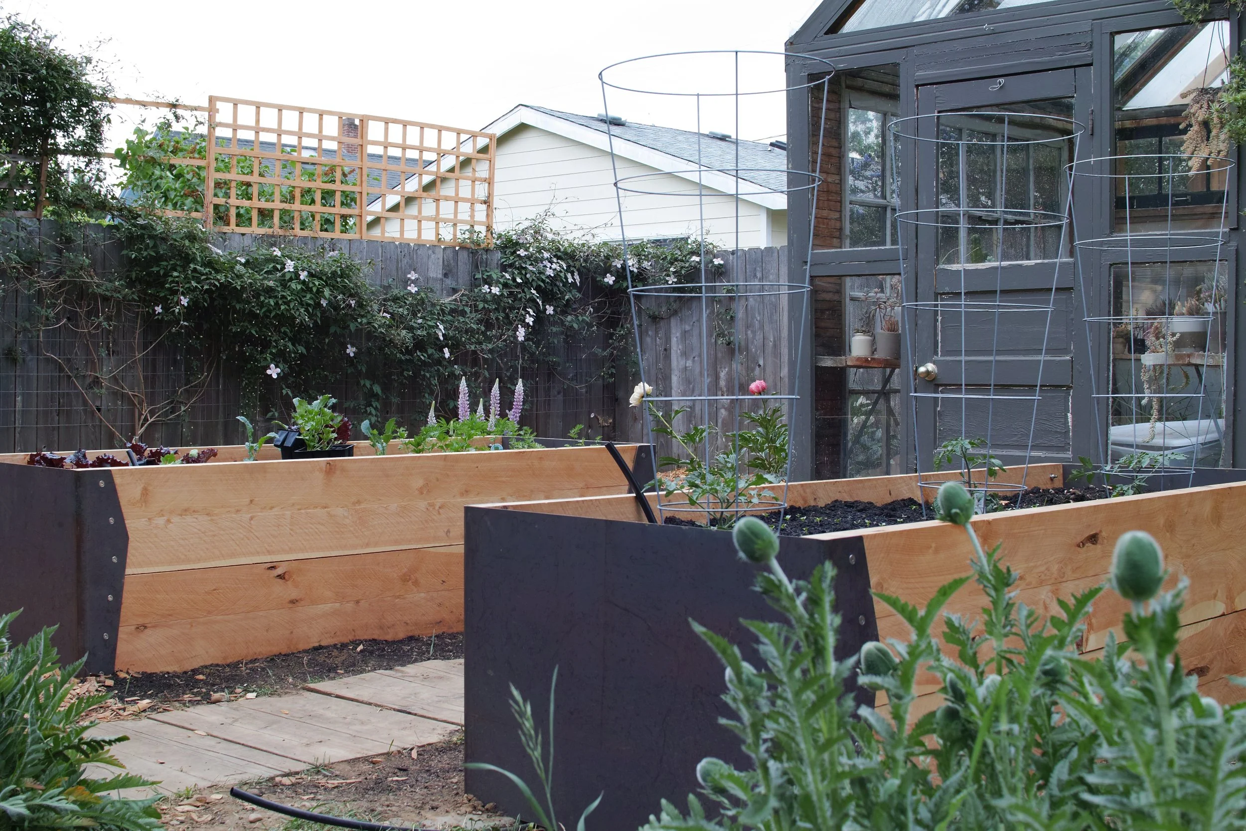Schweitzer ResidenceDesigned and fabricated three garden beds. Waterjet cut 1/4” weathering steel and juniper wood.